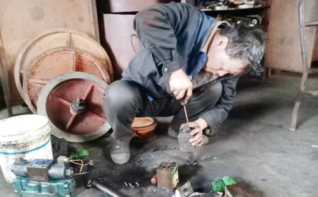 在丰喜集团临猗分公司的造气车间里,一位身着工作服的师傅正席地而坐,埋头沉浸在一堆废旧零部件中,满身的油渍已看不出工作服本身的颜色。他用一双干裂粗糙、满是油污的手,对单、双头电磁线圈进行分类标注,卸下压盖,轻轻拔出阀芯,清理干净阀体和阀芯杂质,涂抹润滑油进行来回动作确保畅通,仔细检查弹簧、垫片好坏,反复调试线圈是否有磁力……他就是临猗分公司造气车间维修工王怀俭。